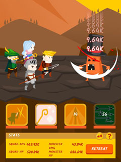 Brave Squad is an highly addictive endless game in the tradition of Cookie Clicker. The premise of the game is really simple: Alone or with your party you have to fight increasingly strong monsters. The gold you earn for slaying said monsters can be invested in upgrading your heroes, unlocking new party members or in hiring workers that earn you money even when you are not playing. But you will be playing. A lot. Just like with Cookie Clicker you go for one more upgrade, one more achievement. And then one more and suddenly a new day dawns and you are not quite sure how this happened.Play Brave Squad now for free! Are you able to unlock all the achievements?