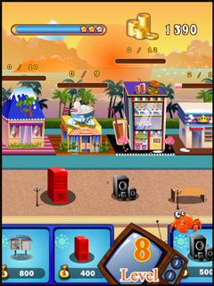 In Shopping Street, your task is to beautify the shopping area of your little town with chic stores, restaurants and boutiques. You start with a small bistro which offers only a few seats and yields little profit. When you fulfill the objectives provided, you get a higher budget in later levels, and more and more exclusive shops become available to you.To meet the increasing demands of your customers and the strict financial constraints of the city, you have to act strategically. Try to curb the ever-increasing flow of visitors while also enticing them into all of your stores. You’ll have helpful objects like park benches, telephone booths, billboards, traffic lights and even a bus stop, all of which serve to stop passersby for a moment or bring droves of visitors to Shopping Street.